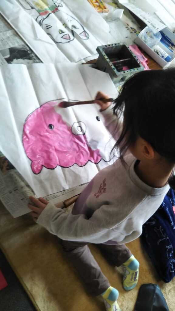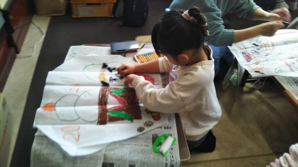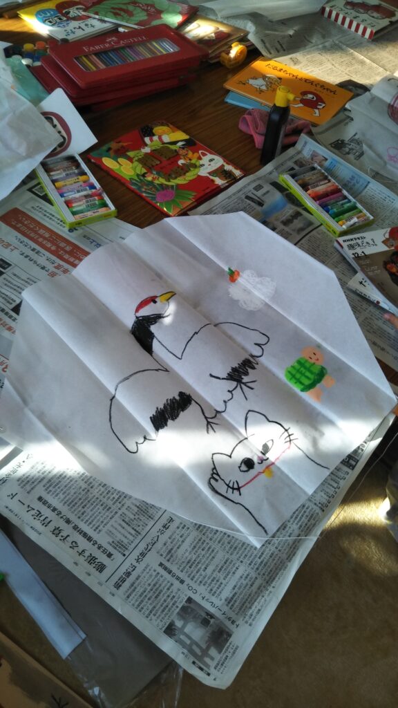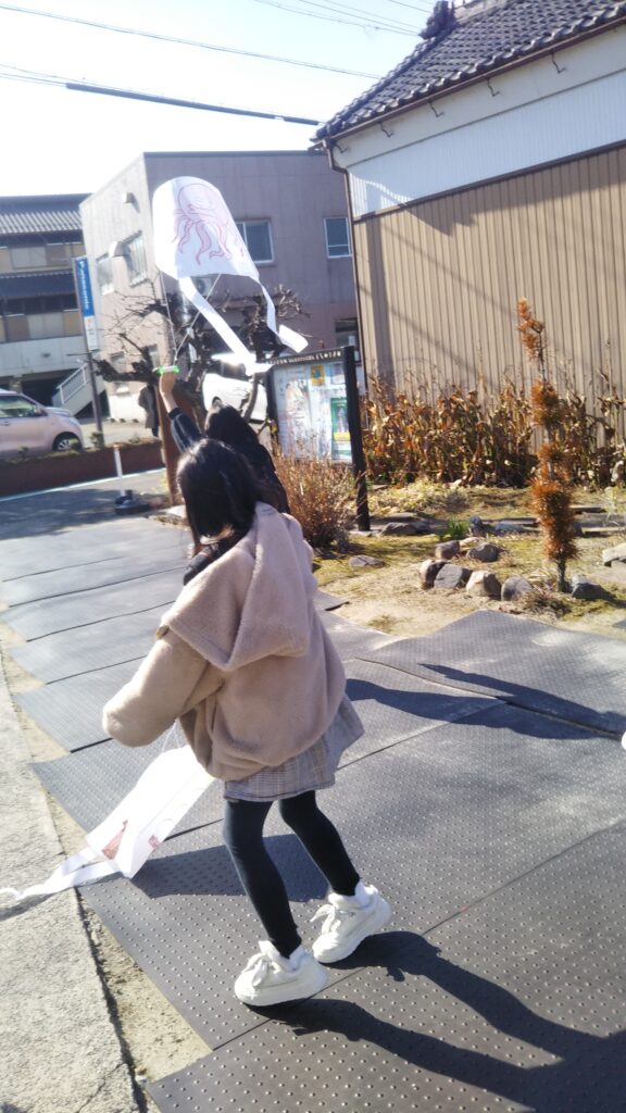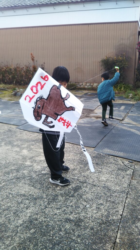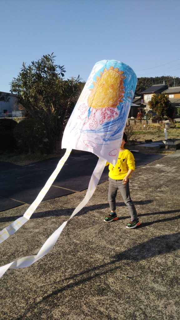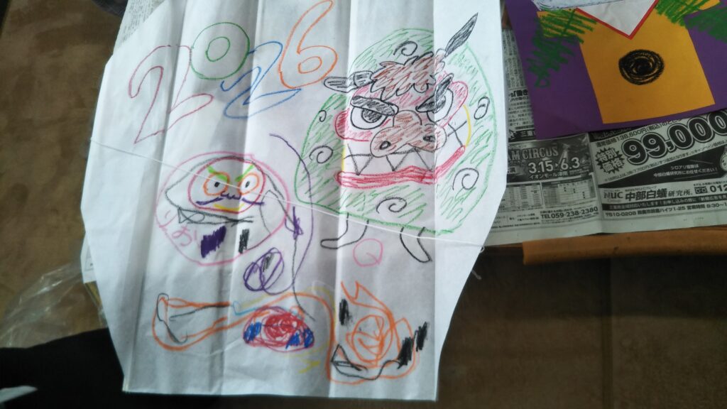 8 2月 2026 2026年1月親子おえかき部(桑名)「凧」 by おえかき部 | posted in: 活動レポート, 親子おえかき部 | 0 親子おえかき部(桑名)の活動報告です。 2026年1月は「凧におえかき」でした。凧の由来や、全国の凧を紹介して、成型してある凧に好きに絵を描きました。紐を結ぶのが難しい子も一生懸命取り組んでくれました。おえかき部の建物の横は、ちょうど風の通り道なので、よく凧があがりました!
