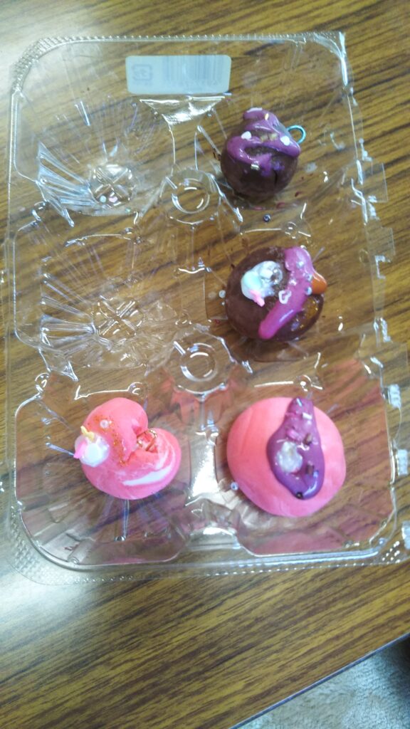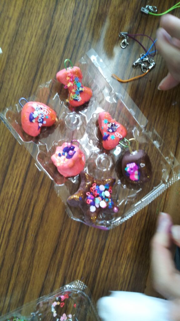 8 2月 2026 2026年2月親子おえかき部(桑名)「粘土・チョコ」 by おえかき部 | posted in: 活動レポート, 親子おえかき部 | 0 2026年2月の親子おえかき部(桑名)は、バレンタインにちなみ「粘土・チョコ」で、ストラップやマグネットを作りました。粘土で丸やハート、キューブや好きな形を作りました。絵の具で混色したり、ボンドでソースを作ったりして、ビーズで飾り付けました。それぞれかわいい形や、キャラクターができました❤️ 2/15にご参加の皆様、お待ちしております。 3月は、3/8,15の開催です。4月はお休み、5月より桑名は新年度の部活動となります。よろしくお願いします!
