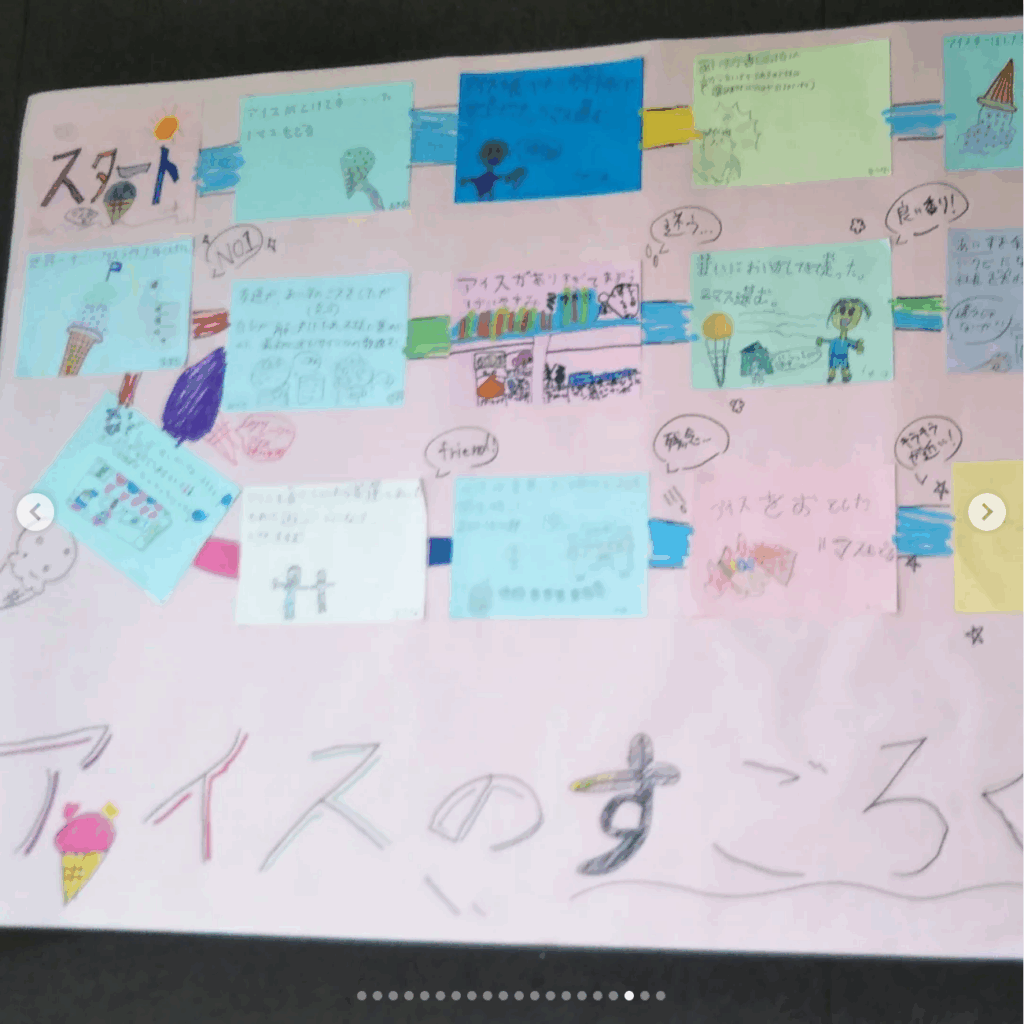 各回話し合い、多数決で双六のテーマを決めました。「学校」「春」「森」「お祭り」「遊園地」「水族館」「ドラえもん」「アイス」のすごろくとなりました。
